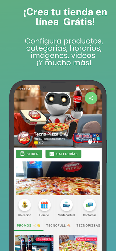 - Store Management: Manage your online store, upload images and create promotions, upload videos, configure your hours, location and more.