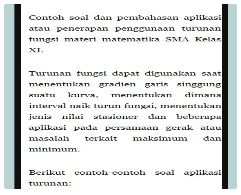 For example, discussion of "Derivative Application". In another article has discussed similar material and discussion. If you have studied the material well then you will be easier to understand the material to be delivered in this discussion. Immediately let us learn together about the material sample and discussion.