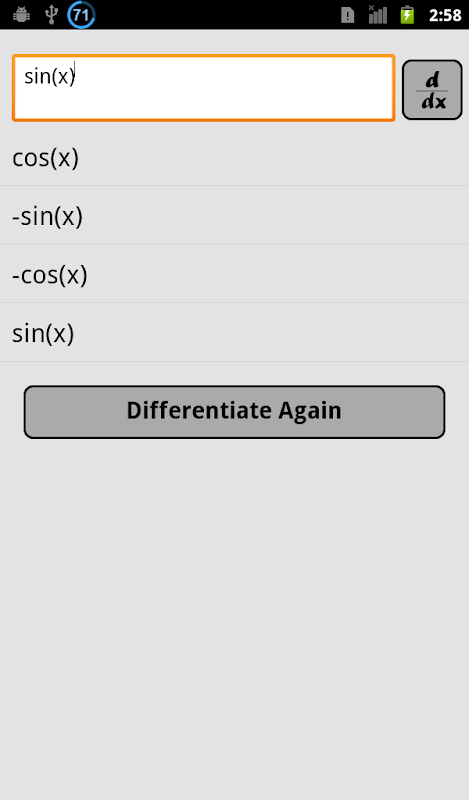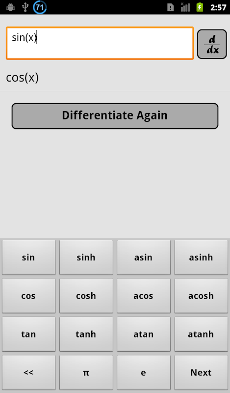 Input the function and app will tell you derivative of that function.