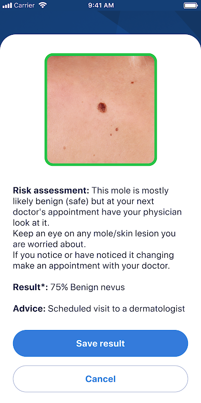 Based on today's most advanced Artificial intelligence technologies and professional knowledge and expertise in dermatology, our application enables you to check your skin spots, birthmarks, moles or papillomas for risk assessment. Within 30 seconds AI-Dermatologist provides some advice on the next step to be taken.