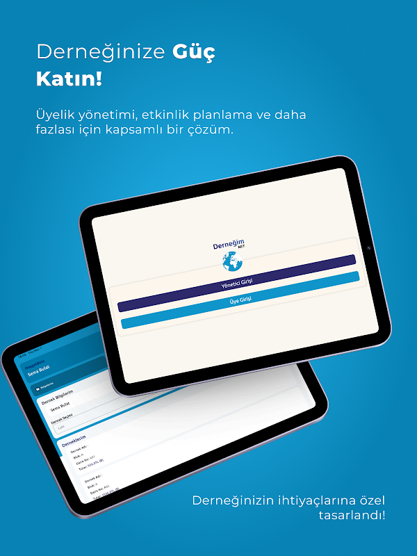 My Association Net is a comprehensive mobile application developed to facilitate association management and gather all the management functions needed by associations on a single platform. Member tracking, event management, dues payments, income-expense records and more are at your fingertips with Dernekim Net!