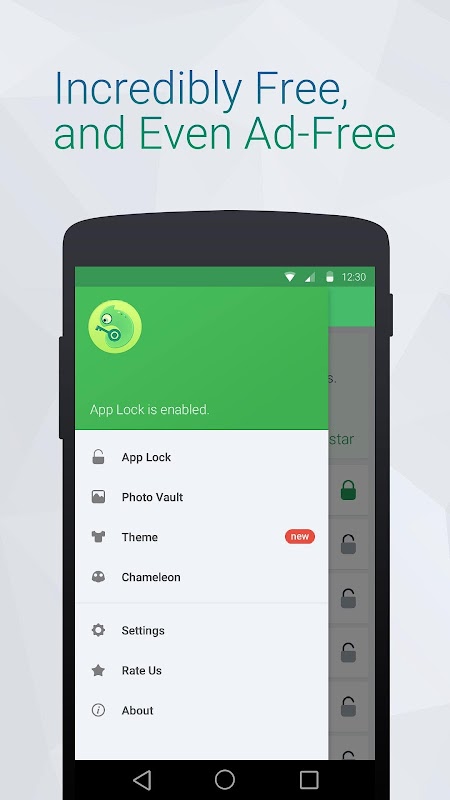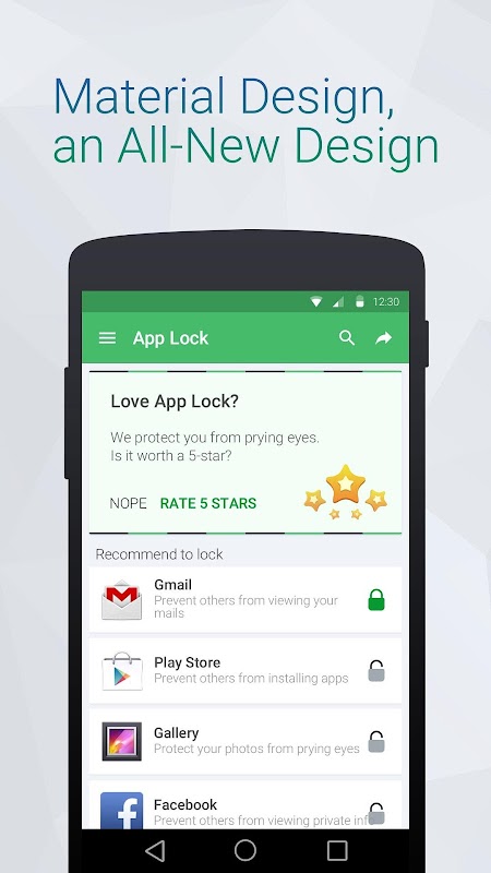 ► App Lock: Secure your Android and protect all your privacy. You can lock individual apps instead of the entire phone. Customized lock screens and wallpapers bring you more choices: pattern and PIN.