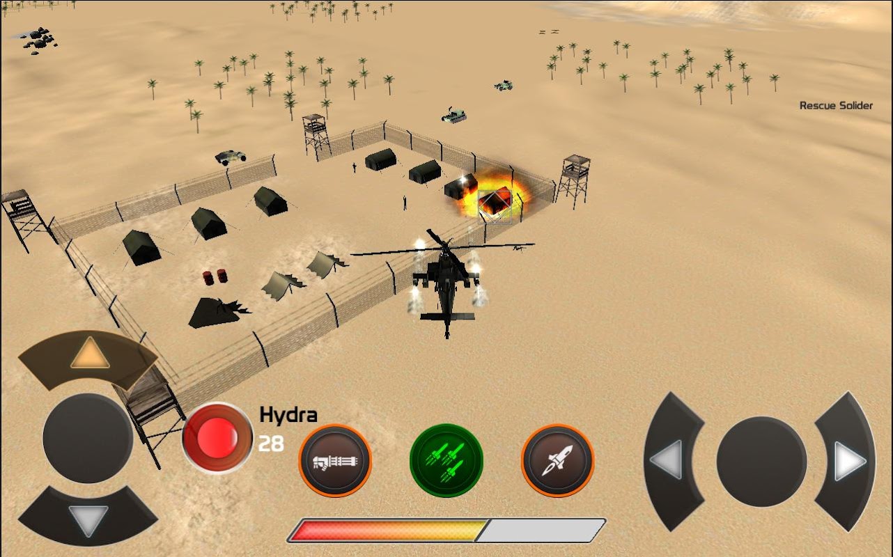 Desert Strikes 3D is an amazing oldschool war game, where you fight against enemy armies. Get in the Apache helicopter and fight against them with powerful weapons!