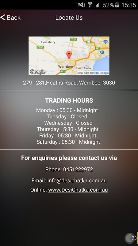 Use Desi Chatka android app for deals, menu loyalty point and more.