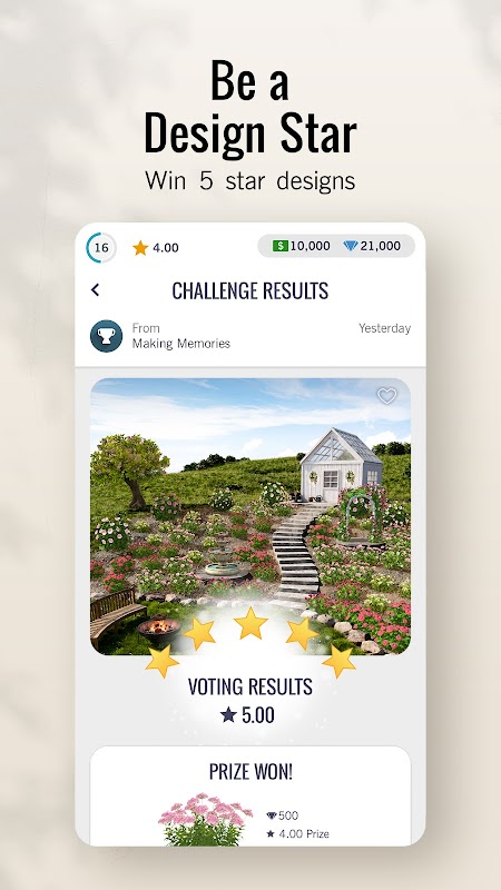- Explore weekly Exterior Design challenges with unique garden design decorations and rewards