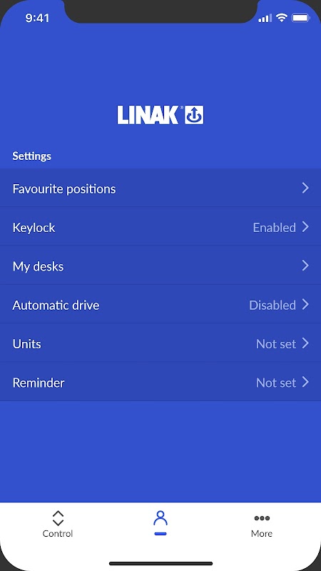 The Desk Connect™ app is developed for users of electric standing desks equipped with a desk panel DPI with display (DPI1C) – powered by an electric LINAK® desk lifting system.