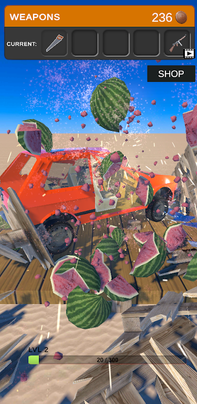 In this destruction games you can select or buy a weapon in Destruction physics 2,throw weapons at the car destory and destruction it to earn more coin and unlock new weapons.