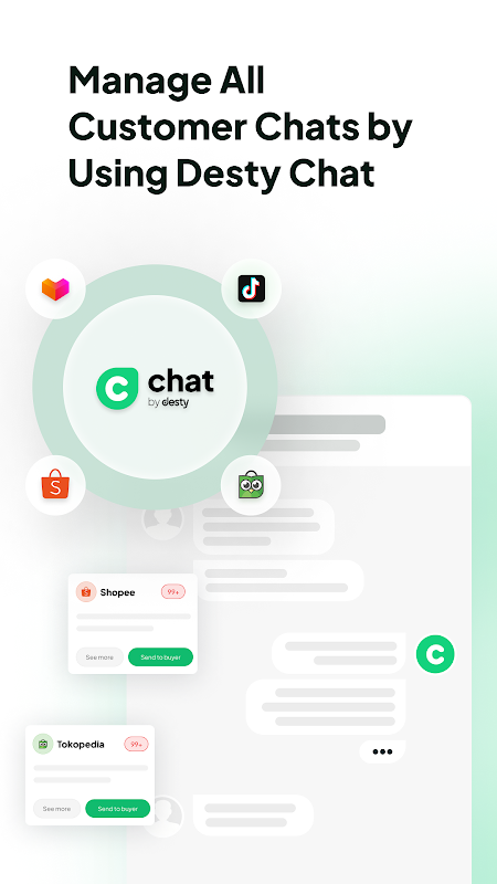 Desty Chat App helps online sellers to communicate with customers at any time and anywhere. Maintain your store rating performance by connecting all of your marketplace platforms in one place for a smoother and quicker response. No more switching between different marketplace apps, you can do it all with Desty Chat