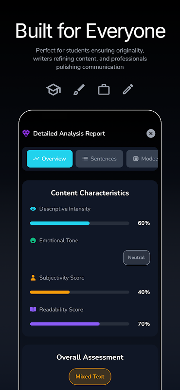 Scan any text (essays, emails, articles) with cutting-edge AI detection.