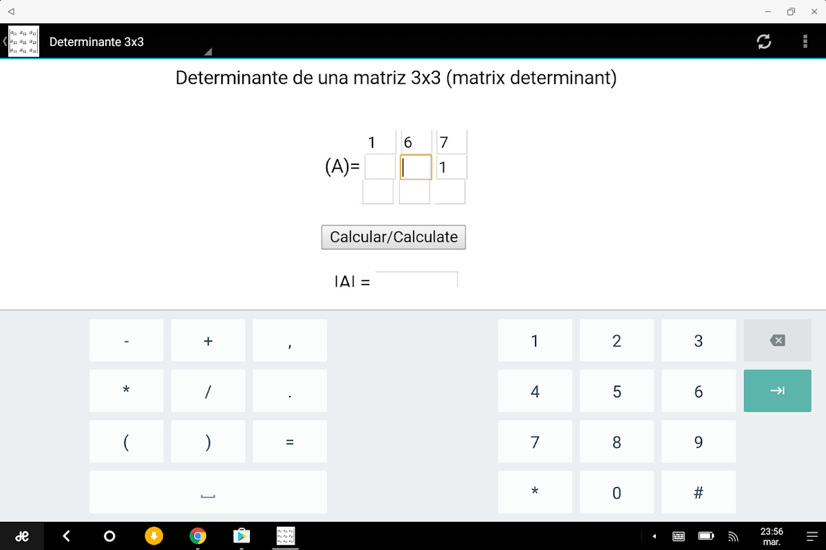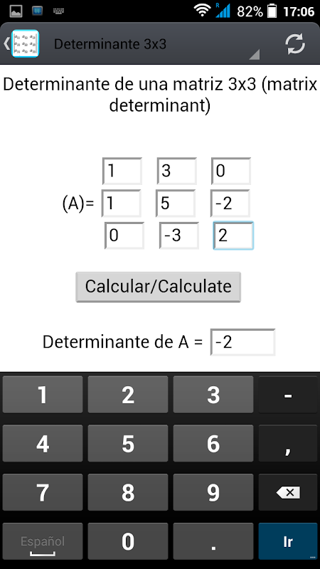 Enjoy this determinant calculator por 3x3 and 4x4 determinants.