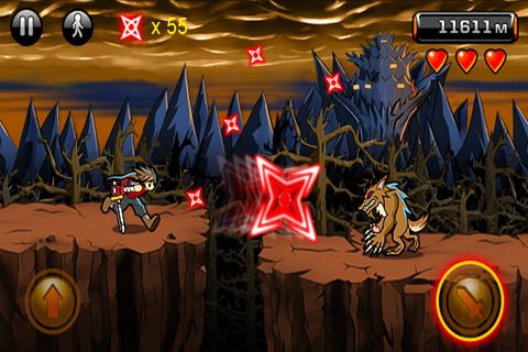 Ninja Fighting game,jump over the cliffs and kill monsters on the devil's land