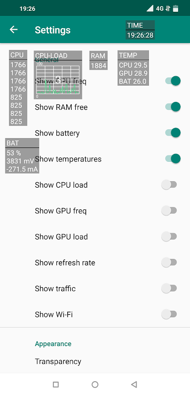 - GPU load, freq (for qcom, exynos, some mtk; for most devices work only with root)
