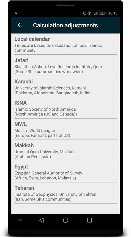* App for displaying prayer times for selected location.