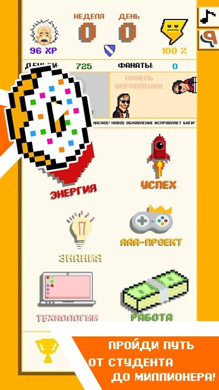 Remember those same square pixel games on the consoles of the 90s, which are so deeply sunk in our hearts? Our artists were guided by this very style during the creation of the DevTycoon design, which endowed him with the good old classic old-school soul.