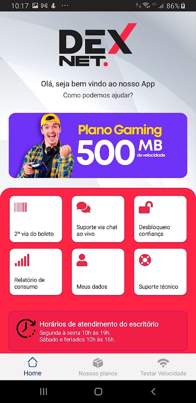 Pode acessar a central de clientes, baixar 2ª via da fatura, abrir um chamado técnico, vê os contratos que tem conosco e diversas outras opções de suporte.