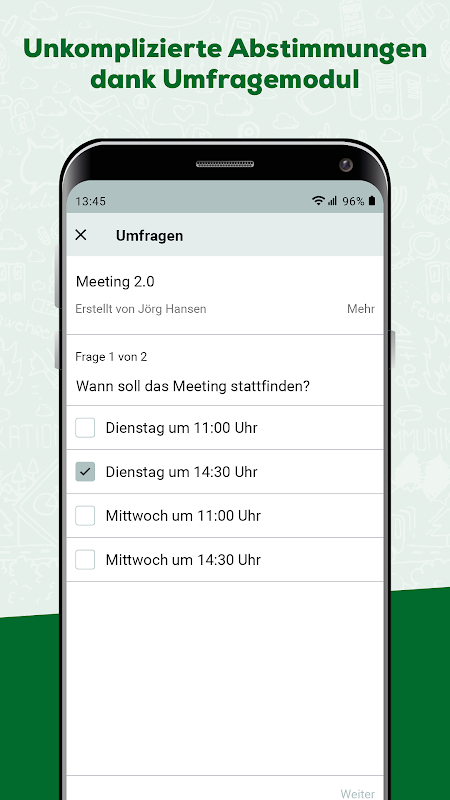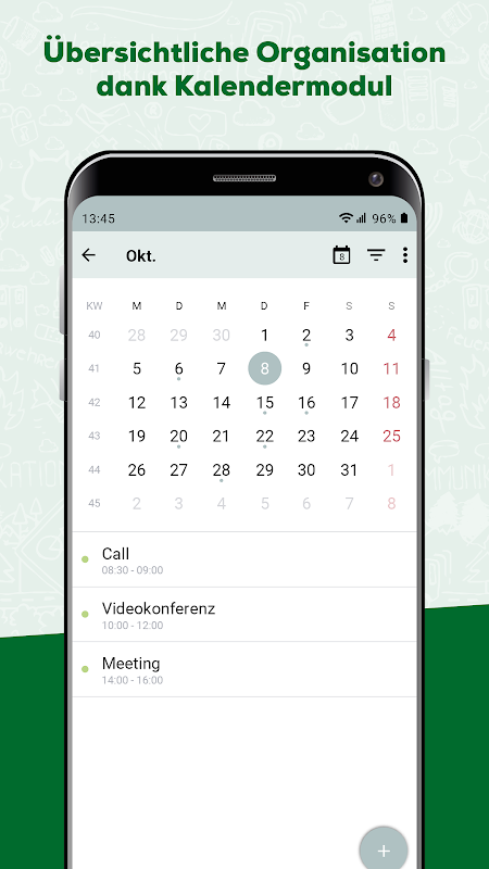 The DF Messenger is used to network employees. This gives you the opportunity to actively exchange ideas within the team, share data, images and videos and also receive all relevant information about campaigns and current topics. Communicate easily, quickly and in accordance with data protection regulations according to current standards. You can individually set and organize your availability outside of your working hours.
