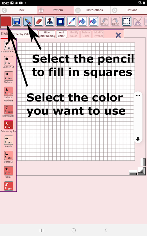 The Diamond Painting Pattern Editor will appear. Fill in the squares with DMS diamond colors.