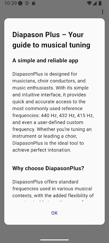 Whether you’re tuning an instrument or finding the right pitch for a choir, Diapason Plus is the essential tool to guarantee perfect intonation in any situation.