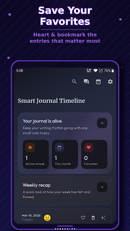 AI Journal with voice notes, journal chat, and weekly recaps.