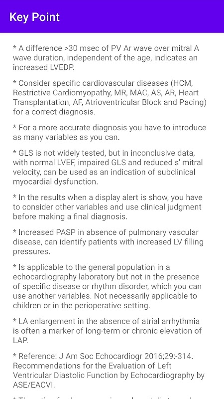 This app allows estimating the left ventricular diastolic function. Useful for professionals performing echocardiography.