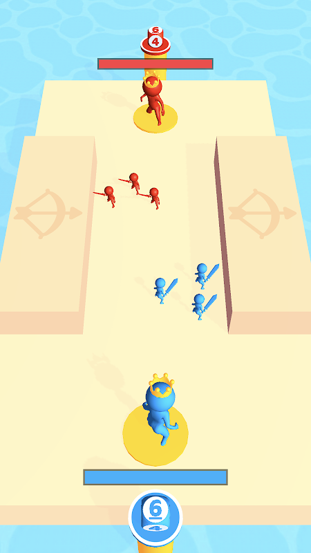 Add more archers to outsmart your enemy. Be careful, and don't let them eliminate your king!