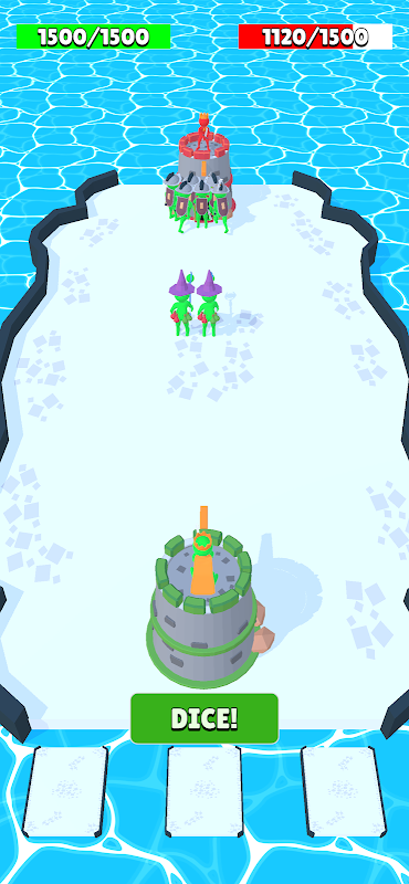 Rolle dice and see what squad of units you get. Beat the opponets army and destroy enemy tower