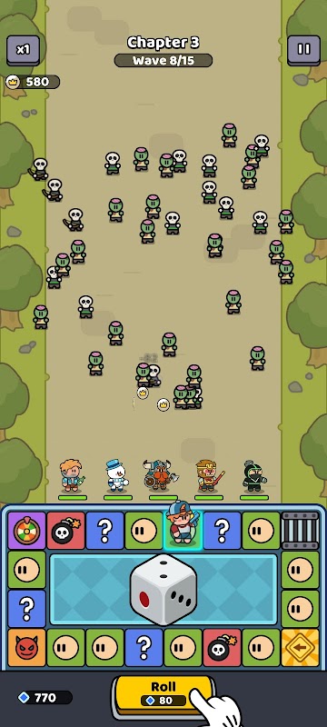 Strategically summon a variety of heroes along the path to defeat invaders. From rapid-fire archers to powerful magic casters, your choices matter. Roll dice to power up your towers and unlock devastating abilities.