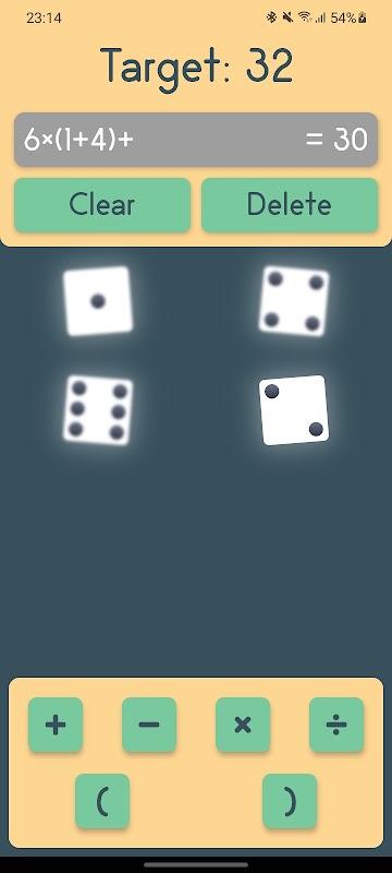Dice Target is a puzzle game where you get a roll of random dices and a target number to create. Your goal is to get to the target number by doing simple math operations (plus, minus, multiply and divide) on the dices.