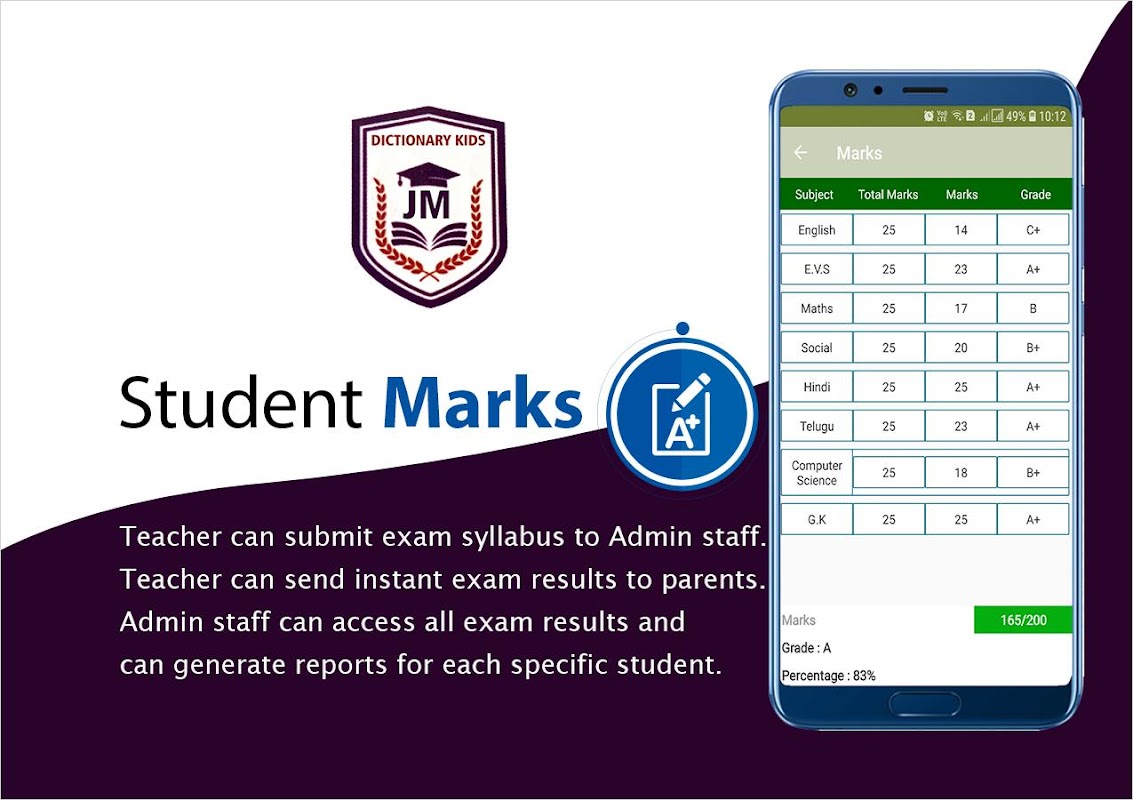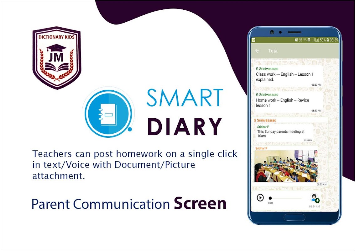 Dictionary Kids Preschool app provides an instant communication system for staff, teachers and parents. It helps the teachers send any kind of information regarding students to their parents instantly with just a click.