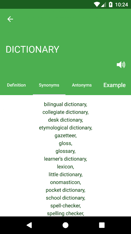 ♦ More than 30,000 English definitions with example, antonym and synonym.