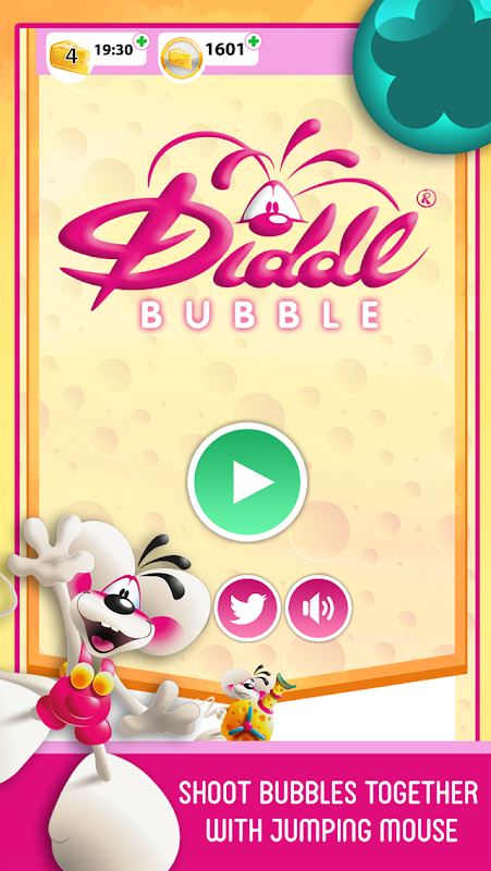 Diddl, your favorite jumping mouse, invites you to play and enjoy bubble shooting game for the whole family. Enter the colorful world of Cheesecakeland, filled with hours of infinite fun! Match 3 or more bubbles to clear the board and reach the highest score!