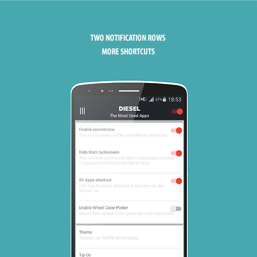 DIESEL App Switcher allows you to keep your home screens clean, gives access to recent apps from pull notification.