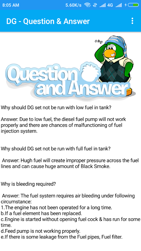 Diesel Generator is one the most important equipment in Property Management and those who working in Facility/Property Maintenance will always need the knowledge of DG. I created this app to support them. This App contains Basic Principles of DG, Parts Explanation, Maintenance Guidelines, Do's & Dont's, Diesel Consumption Calculation and Trouble Shooting points.