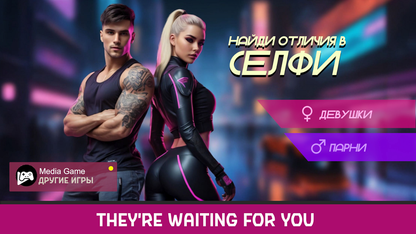 'Spot the Difference in Selfie' game. These are beautiful guys, beautiful girls, interesting neon-style locations. There is no need to rush - time is unlimited. Train concentration, attention, and ingenuity.