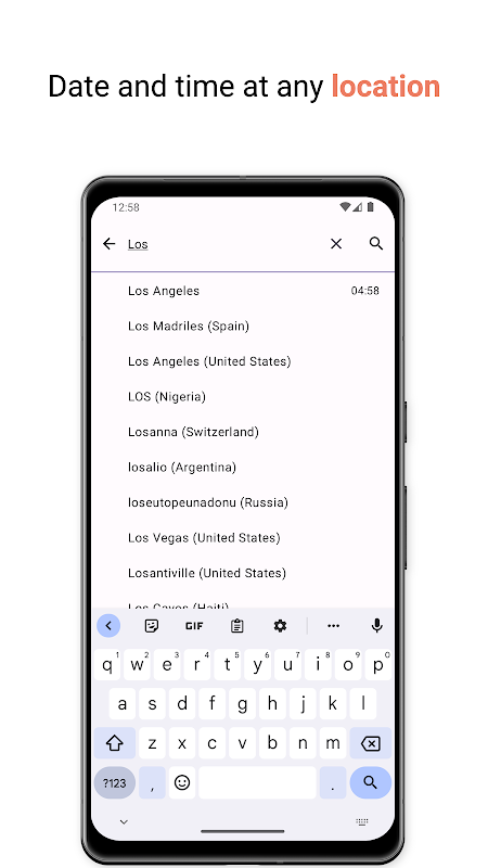 - Displays the date and time in time zones that you search by location