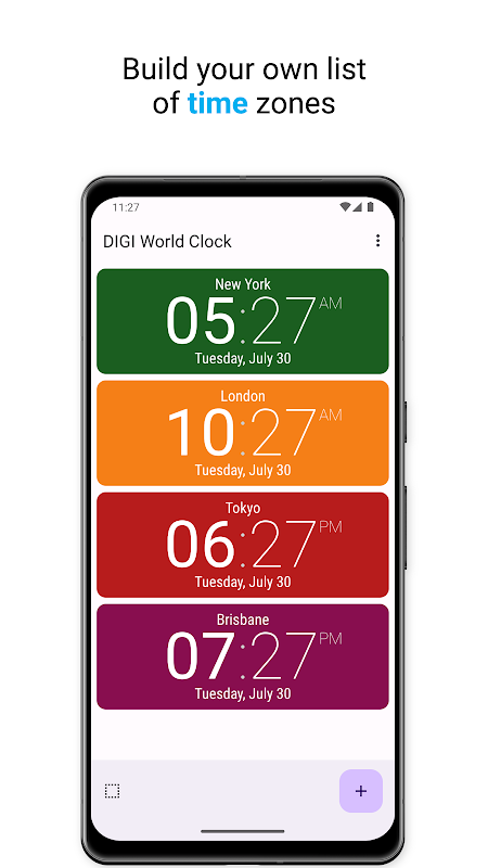 Want to know what time it is anywhere in the world? Do you want to have the time quickly and clearly available on your mobile phone, just the way you like it? Try DIGI World Clock!