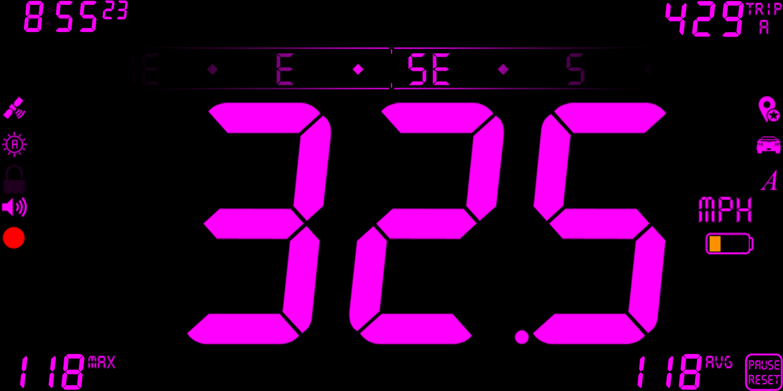 - All values can be reset by long-pressing "PAUSE RESET" (except Odometer reading in the Statistics popup).