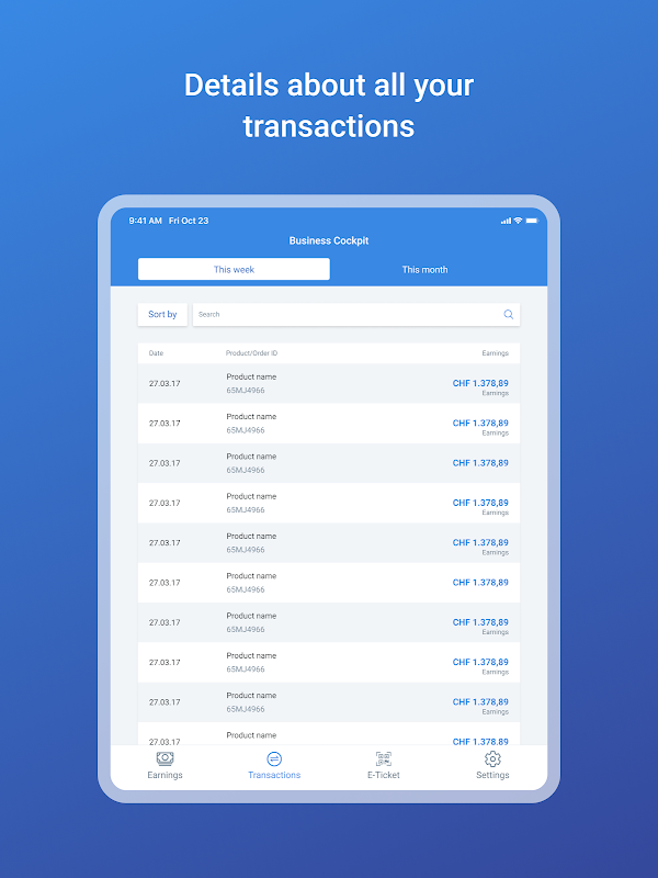 Do you have an urgent question about a transaction that just can’t wait until you’re in the office? It can be answered superfast: All transactions can be conveniently viewed in the app and filtered by order ID, product ID, product name, customer email, first and last name, payment method or currency.
