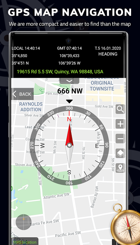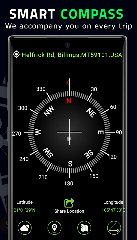 👉 GPS compass for android takes advantage of compass & GPS & Network to get your position on Earth, and obtains map information near your location using Google Map and GPS locator and also provide the location of your friend.. Digital compass app is a tool to search bearings (azimuth, directions) using embedded magnetic sensors.