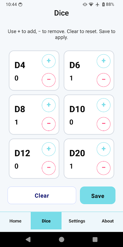 - Choose from classic dice (D4, D6, D8, D10, D12, D20)