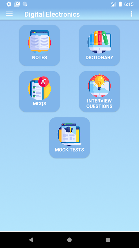 The Digital Electronics app provides short and to the point valuable digital electronics notes, digital electronics mcqs, MCQs Quiz, digital electronics interview questions, digital electronics dictionary etc for students of various Science/Engineering disciplines such as Computer Science, Information Technology, Software Engineering, Telecommunication etc. or anyone who wants to enhance his/her knowledge in the field of Digital Electronics or Digital Logic Design.