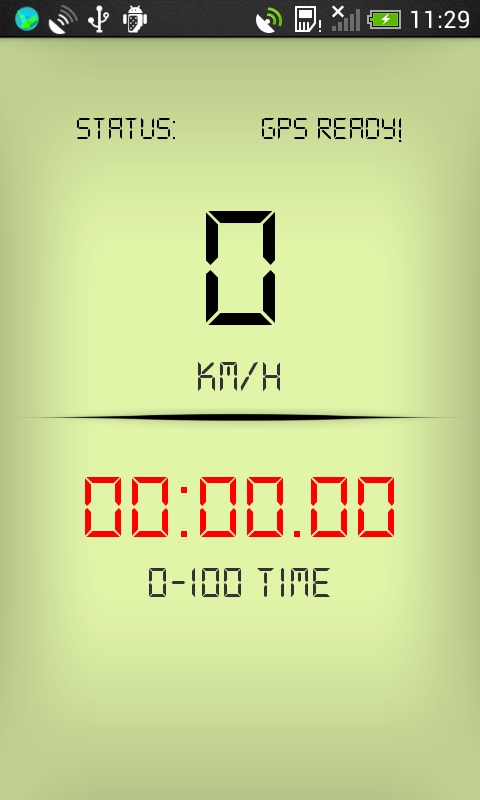-Measure you car acceleration from zero to sixty mph (or zero to hundred kmh). You just have to turn on the GPS, enter the acceleration measurement menu and wait for a satellite fix. Once ready to go the status will be changed to "GPS READY". The app automatically detects if you are stationary or moving, so you just have to go. Once the mark(100 for kmh, 60 for mph) is reached the timer will stop. If you stop again the timer will restart and you can perform the test again.