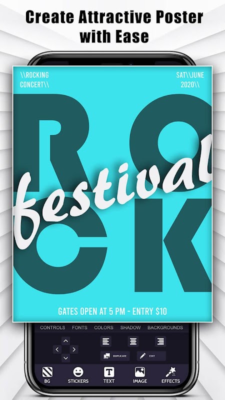 Poster Maker is an easy to use app, just select the background you like in the ratio as per your need and add your text with poster design fonts, add wonderful stickers (specially picked for poster making), add your pictures from gallery and create perfect poster every time.