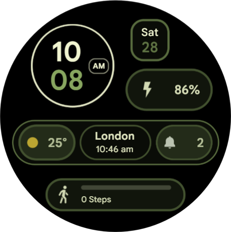 An analog watch face for your Wear OS smartwatch inspired from Material You by Google. With organic shapes and pastel colors, the watch face aims to spice up your watch and bring a consistent UI with your phone.
