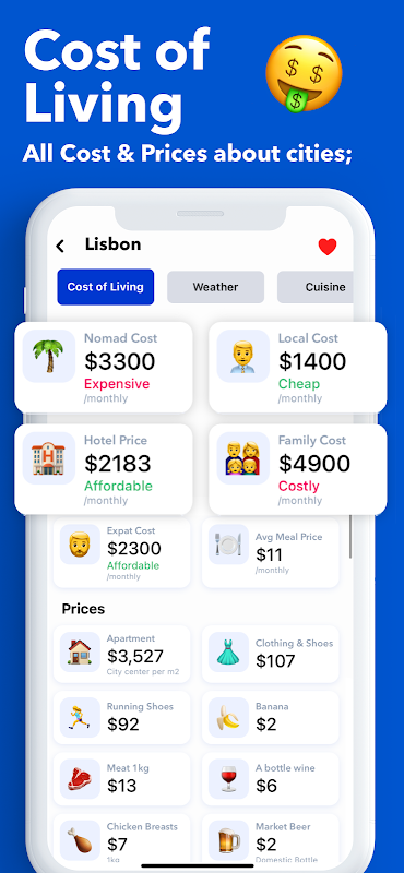 The Nomad Life app provides users with helpful information about becoming a digital nomad, how to manage your finances, and how to stay safe while traveling, learn more about peoples, foods, internet, places, brands... It also includes near, next, and similar city suggestions so that users can plan their trips accordingly. Additionally, the app provides users with reviews of cities, help them make the most of their travels.