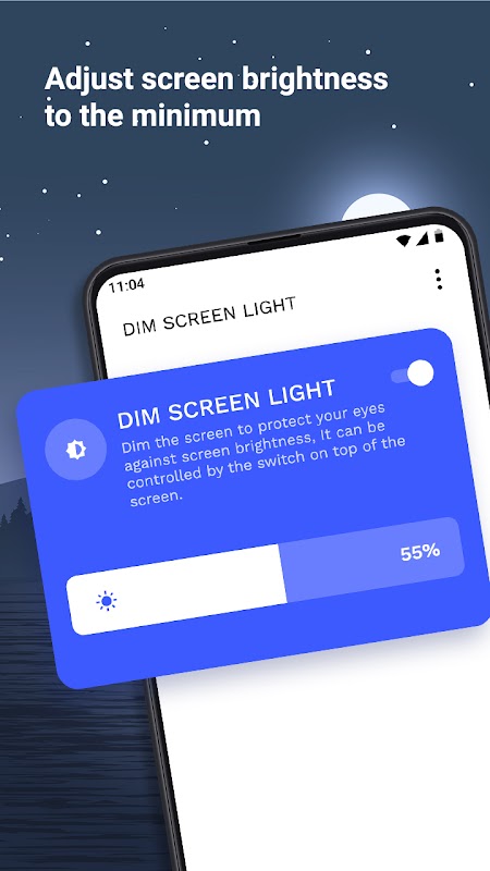 Download Dim Screen Light - Adjust brightness to any Level app and prevent burning the battery, and can use the phone at night.