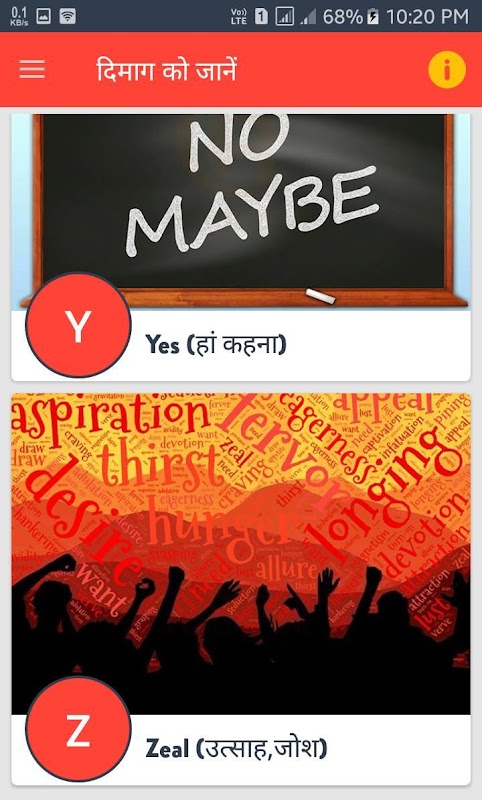 Dimag ko Jane (Know your brain) app has the following categories of contents: Brain functions,How brain works, Memory enhancing techniques, empower your brain, dimag tej karne ke totke, A-Z brain techniques, memory boosters, memory techniques, dimag kaise badhaye, dimag tej karne ke trike,Improve brain memory, Brain training, improve brain function, train your brain, memory trainer, brain fitness,brain activation, student brain booster, student memory enhancer.