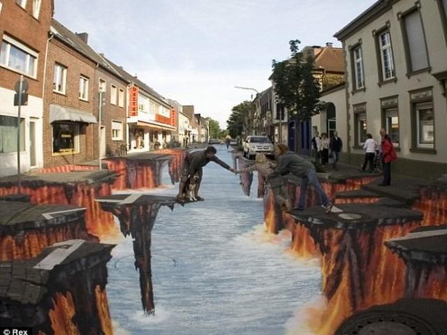 Share with friends these amazing photographs of three-dimensional paintings painted on the floor, you can send mail, whatsapp, or upload them to facebook, as you like!