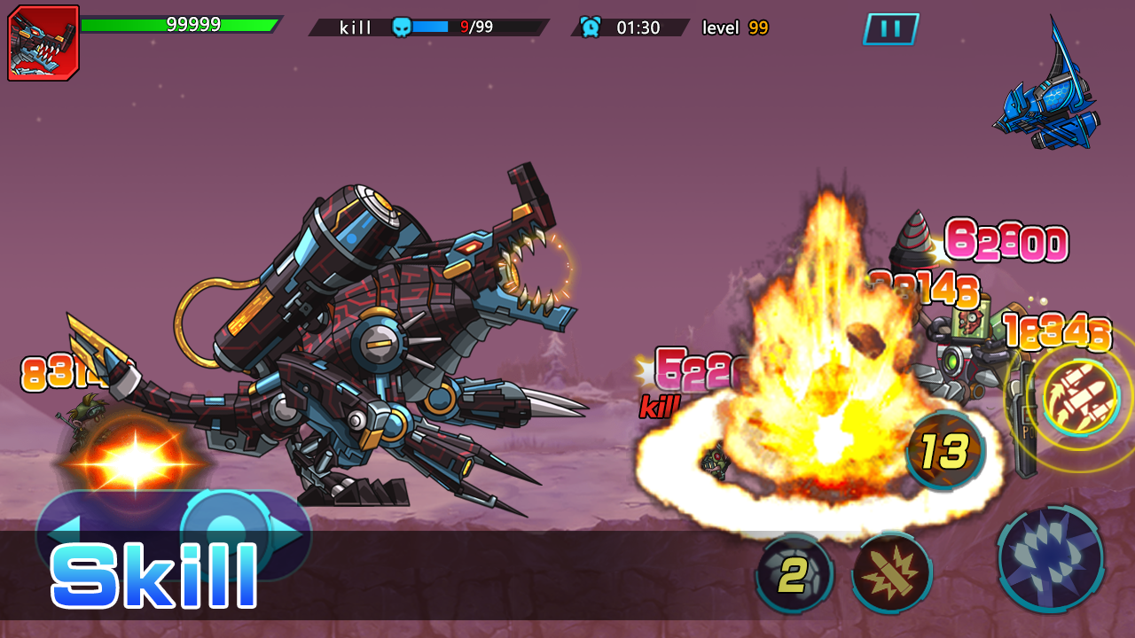 Control your hungry dragons to bite, shoot, burn and cast skills to destroy all the demons to win the war.The forces of evil include savage zombies,mutanted venomous insect,powerful mecha weapons,nefarious Jurassic dragon and mighty dino robot .Win wars to keep escalating and get more powerful equipment become the dinosaur overlord.