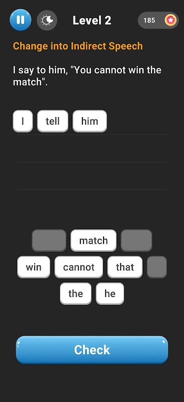 Learn Direct and Indirect Speech. There are given two ways to practice, scramble and quiz.